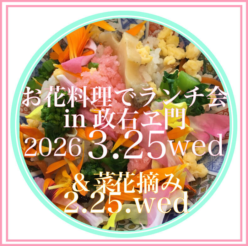 ランチ会開催日 2026年3月25日水曜日/菜花摘み 2026年2月25日水曜日