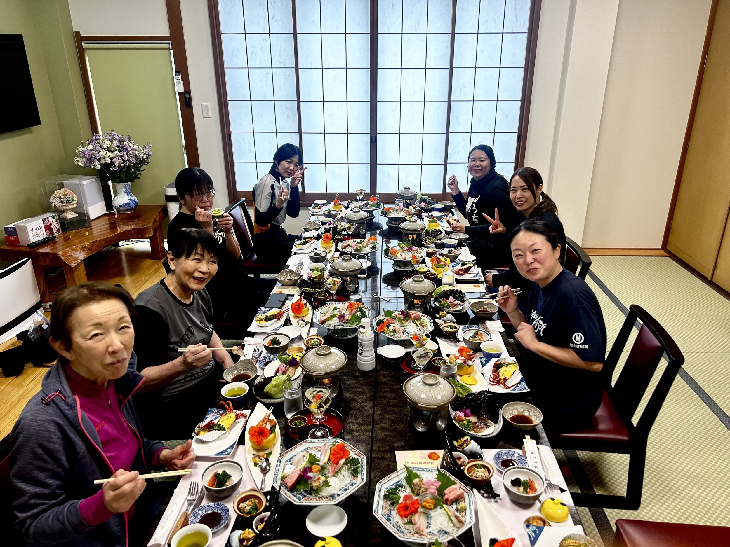 ランチ会が始まるとさらに次々に揚げたての天ぷらなどのお料理や
